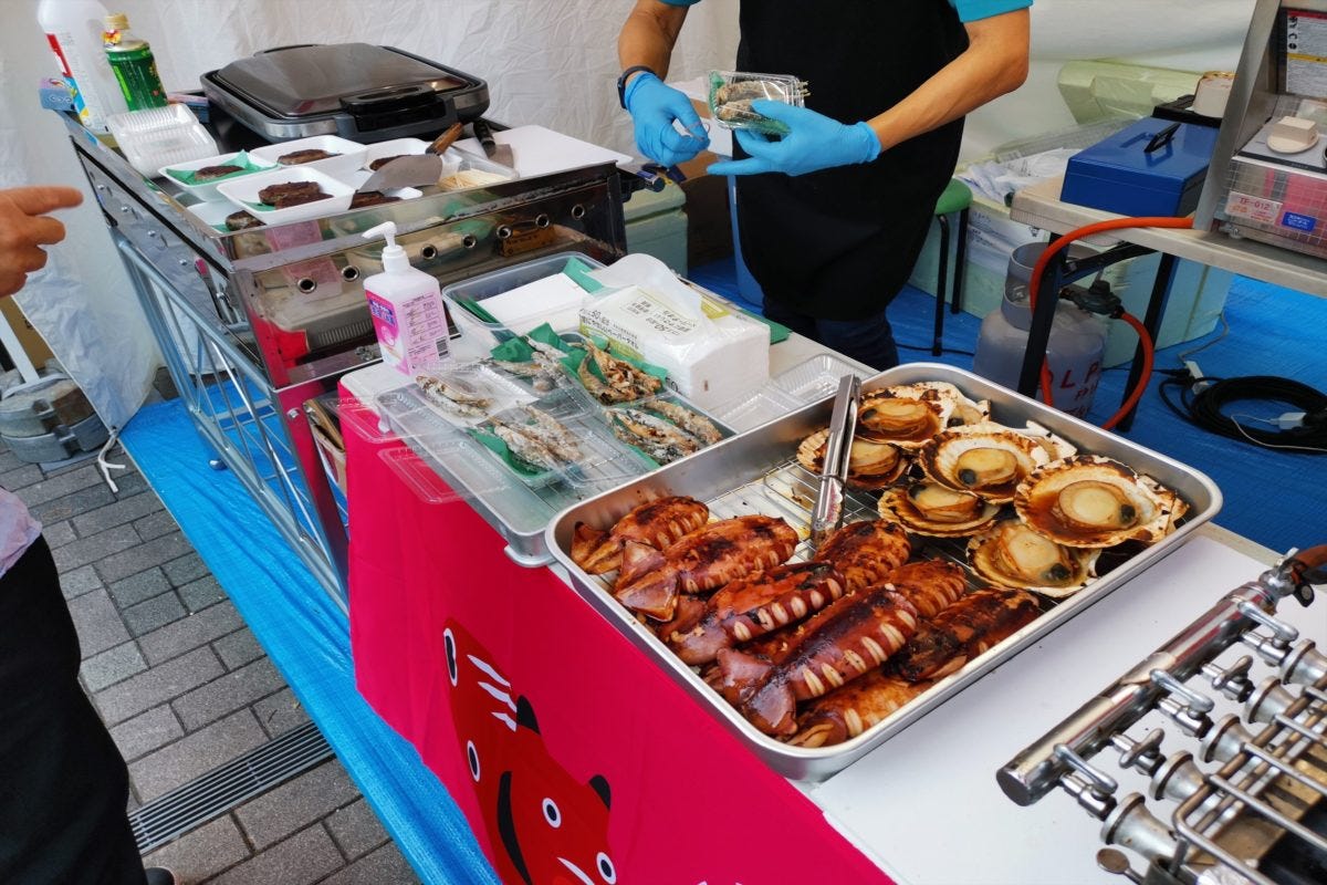 屋台はたくさん出店しているが、福島県好きな記者がまずイチオシしたいのが、常磐ものの「めひかりのからあげ」や、「さんまのぽーぽー焼き」を販売しているいわき市の「はまから」。