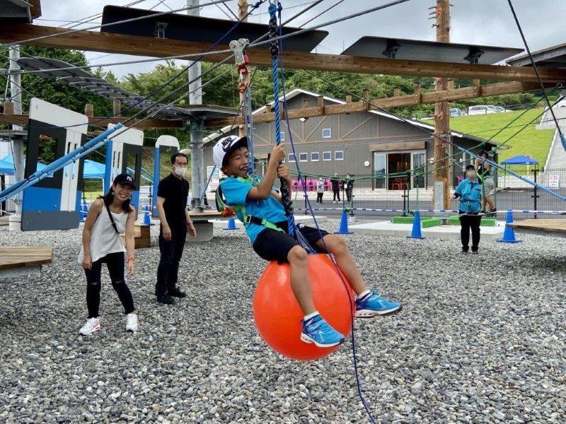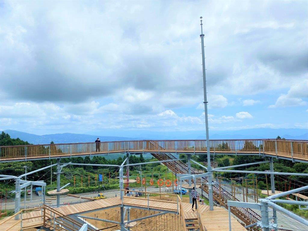 「ドラゴンキャッスル」は屋外のアクティビティですが、この辺りの気温は三島の街なかよりも3℃ほど低く、涼しく感じます。また、少しの雨なら遊ぶことができます。頂上に立つ避雷針は、雷を集めるのではなく、避けることができる特殊なものだそうです。(荒天、メンテナンス時は休業の場合があり)