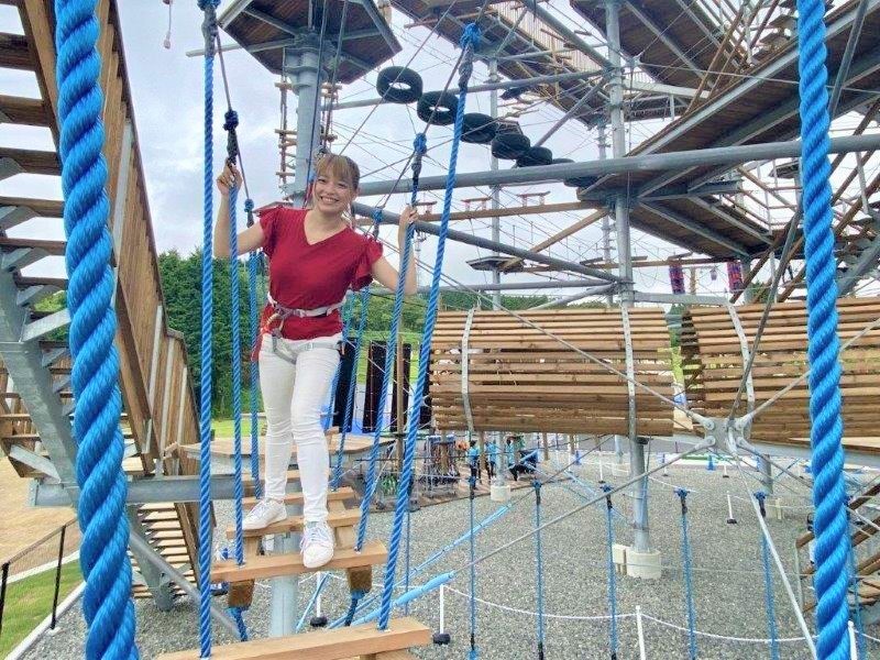 準備ができたら、「ハーネス」という安全器具をつけてもらいます。「ハーネス」を着けたら次はインストラクターによる安全講習。安全に楽しめる準備ができたら、いざ、頂上制覇へチャレンジです!