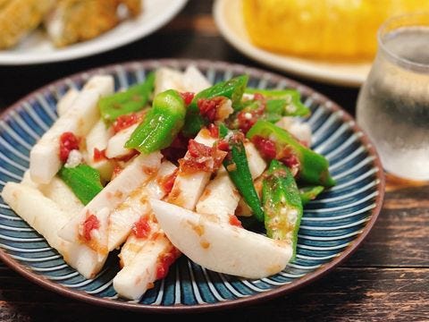 梅おかかでさっぱり食べられるこちらのおかずは、オクラと長芋のダブルのネバネバ食材でツルッと食べられます。