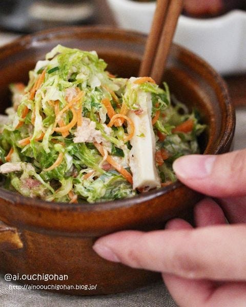 キャベツやツナなど身近な食材で作れる、梅マヨ味のサラダです。