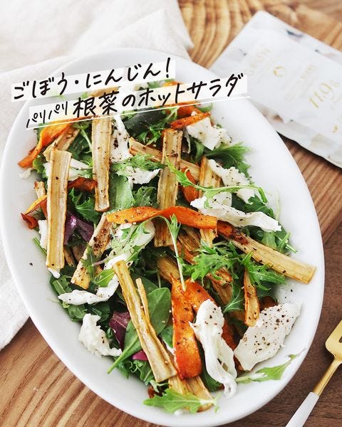 根菜は煮物など加熱して食べることが多いですが、薄くスライスして揚げれば、生野菜と一緒にサラダにして食べられます。