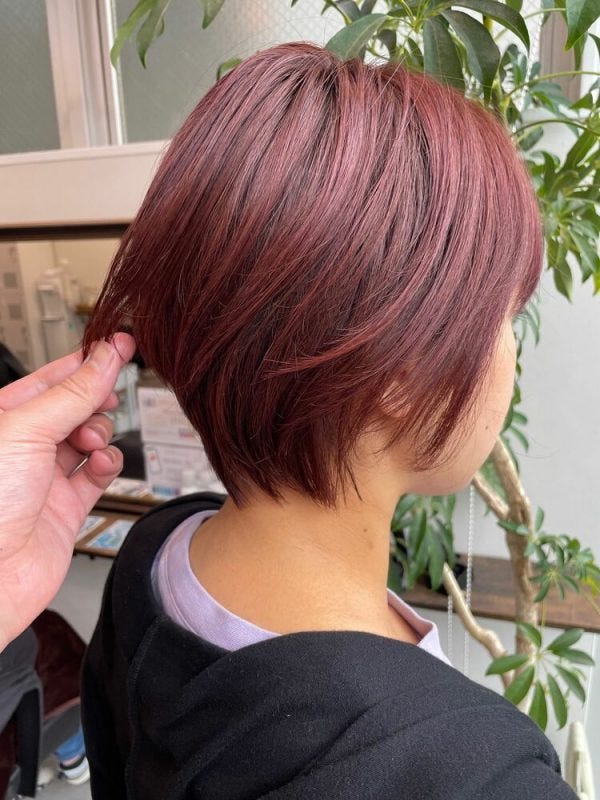 いつものシンプルショートをイメージチェンジしたいという大人女性には、こちらの深みのあるピンクカラーがおすすめです。