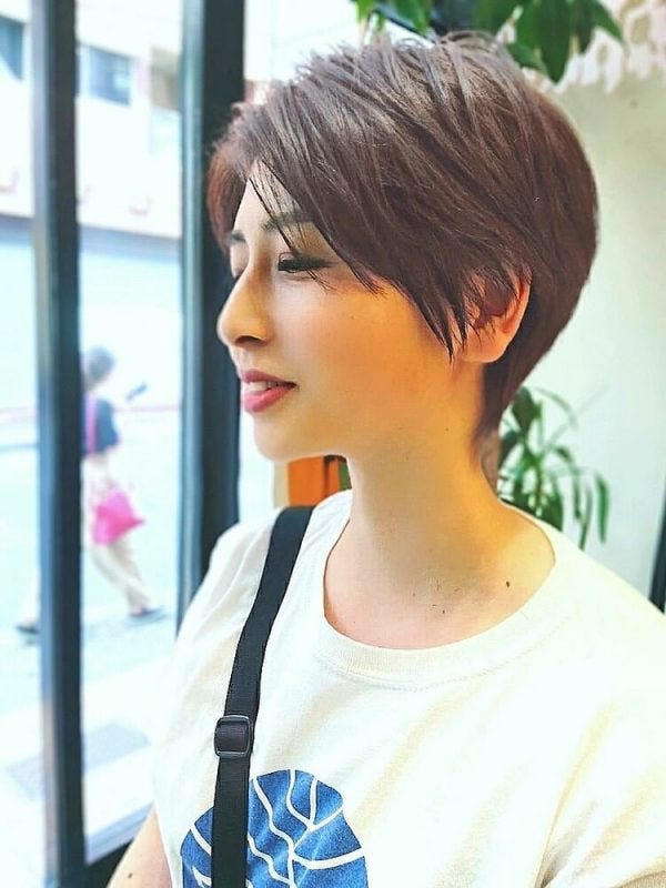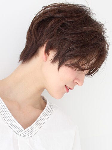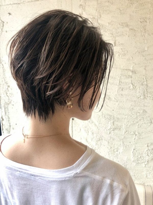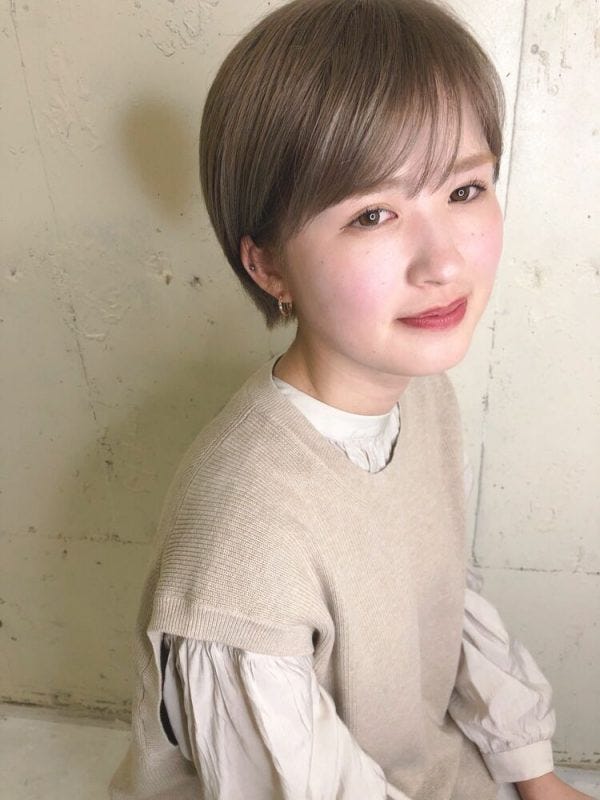 耳が出る短めのショートヘアの場合、ヘアカラーによってはクールでマニッシュな印象になりがちです。