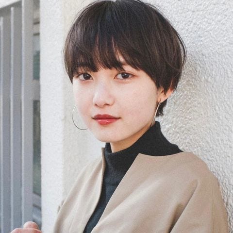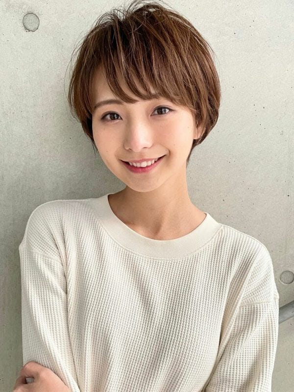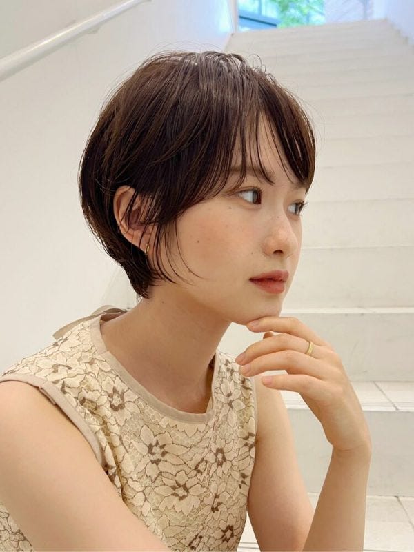 前髪長めでシンプルなシルエットのショートヘアは頭の丸みを強調することで、キュートな仕上がりになります。