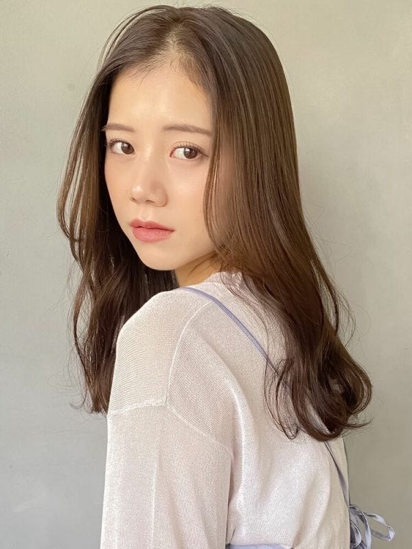 ベージュ系の髪色でも地味にならず、ナチュラルさもあっておしゃれ度も抜群ですよ。センター部分で髪を分けることで、小顔効果も期待できる髪型でもあります。