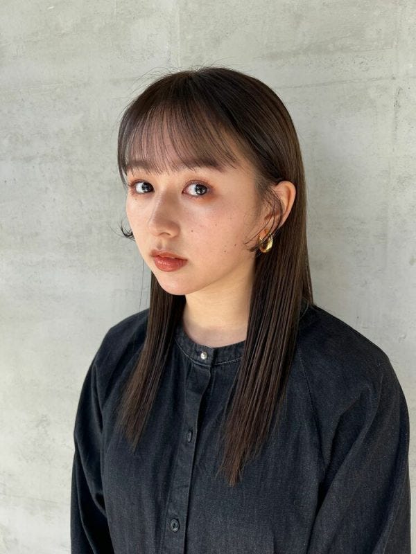 前髪も重めにすることで秋のトレンドを意識しつつ、おしゃれでこなれ感たっぷりな仕上がりになります。