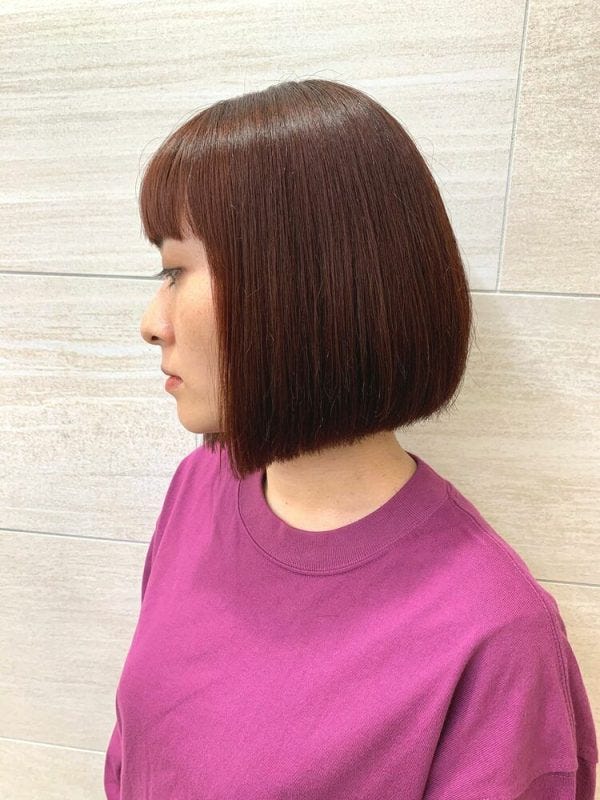 ボリューム感が控えめのまとまりがあるボブですが、毛量多い人はストレートパーマをかけて広がりにくくしてあげるといいですよ。