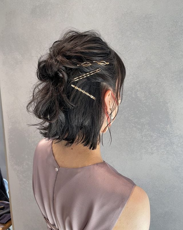 前髪の後ろに髪をねじっていき、耳元でピン止めするだけなので、アレンジが苦手というボブの方でも、簡単に真似ができますよ。