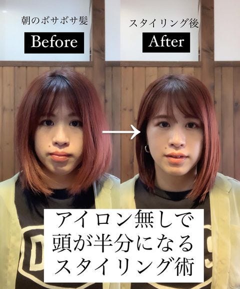 アイロンなしで広がりを抑える伸ばしかけボブ