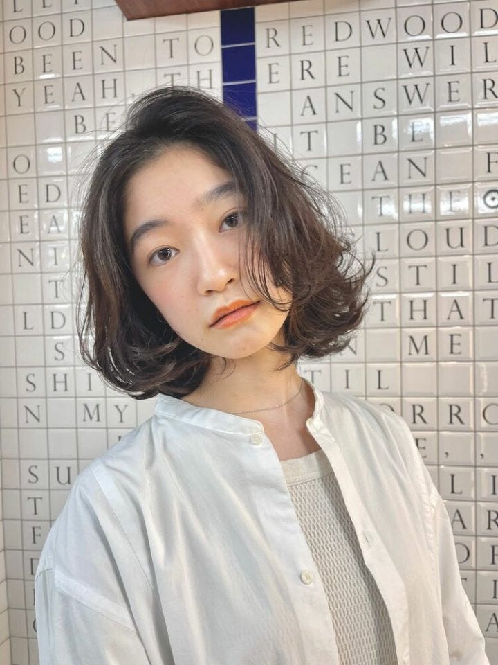 でもこちらのように毛先に大きめなカールのパーマをかけてあげれば、ランダムな動きが大人可愛い伸ばしかけボブの髪型が作れるのでおすすめです。