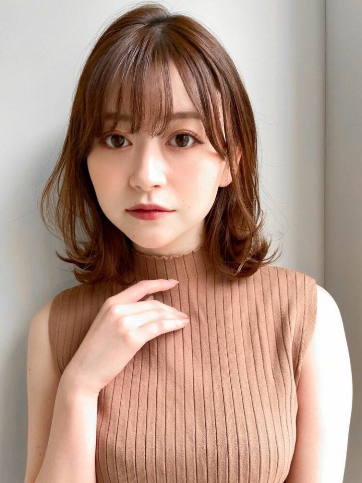 内側の前髪を少しおろし気味にすることで、ナチュラルな小顔効果も出ますよ。