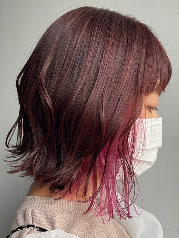 ピンク系の色合いでヘアカラーを楽しみたいのなら、暗めのピンクブラウンに人気のインナーカラーを入れる方法がおすすめです。