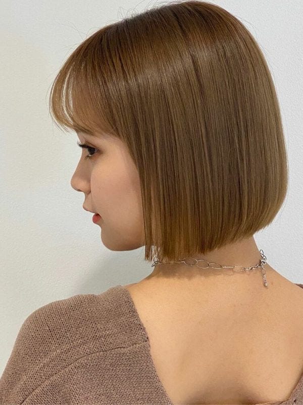 タイトなシルエットのワンレンボブも、明るめのヘアカラーにすると今までとはイメージの違うおしゃれなヘアスタイルになりますね。