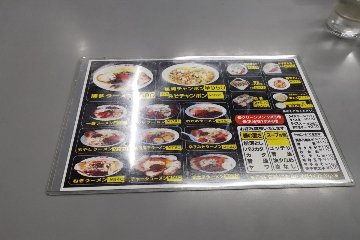 博多一番は口コミの評価も高く、スタンダードな「博多ラーメン」は680円と非常にリーズナブル。麺の固さやスープの量も自在に選べるが、つくしあきひと先生が絶賛する味はどれほどのものなのだろうか?