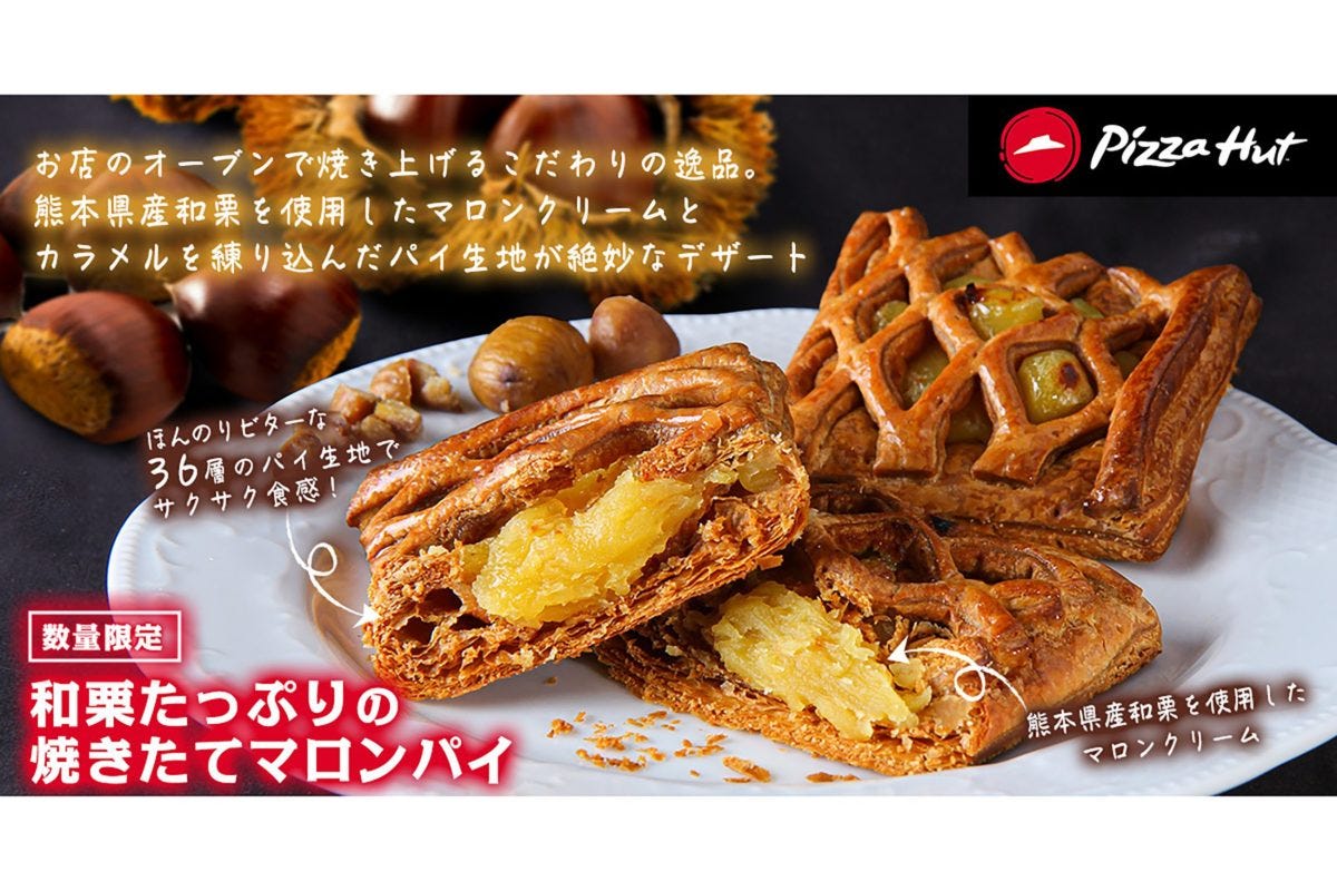 今回、同社では豊富な新メニューとセットを取り揃えた「ピザハットの中秋の名月セール」を実施。熊本県産和栗のマロンクリームをお店のオーブンで焼き上げたサクサクのパイ生地で包んだ「和栗たっぷりの焼きたてマロンパイ」がこの秋だけの数量限定で新登場する。