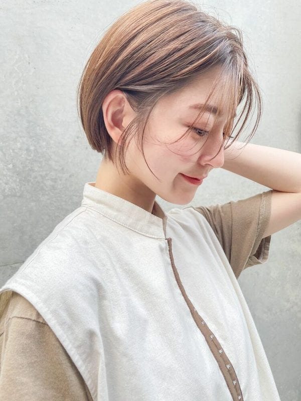 顔周りを出しすぎない髪型は、ショート初挑戦の方にもおすすめ。