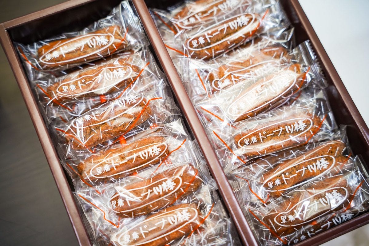 そのお菓子というのが、こちらの『黒糖ドーナツ棒』。第24回全国菓子大博覧会リッチモントクラブ賞、第25回全国菓子大博覧会名誉総裁賞を受賞しており、子供から大人にまで多くのファンを持つ。