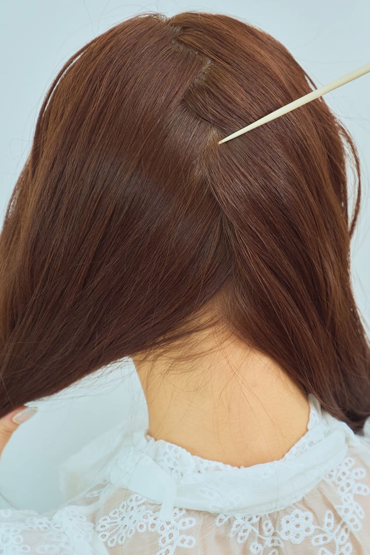 後頭部を縦に分けるときに、ジグザグにするとニュアンスが出せるよ。