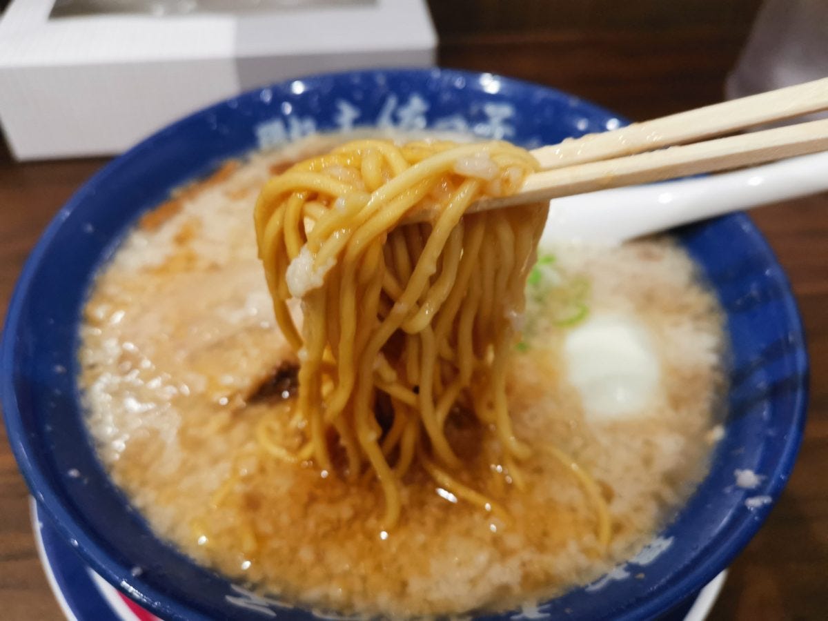 麺は少し硬めの細麺。濃い味スープをまとうと、麺とトロッとした背脂の食感の違いが面白い。記者は文京区の白山通り沿いにあった「白山ラーメン」の柔らかめな麺が好きだったが、これもアリである。