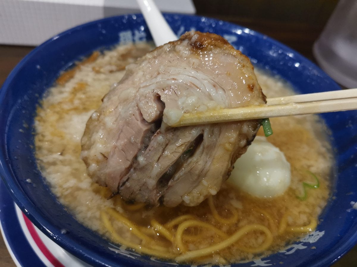また、チャーシューも肉厚でホロホロ、濃厚な醤油味が昔懐かしいけど今でも激ウマ。悲しいことにオッサンになってしまったため1枚で十分だが、若い頃なら5枚はいけていただろう。