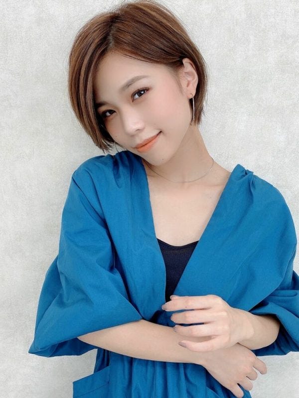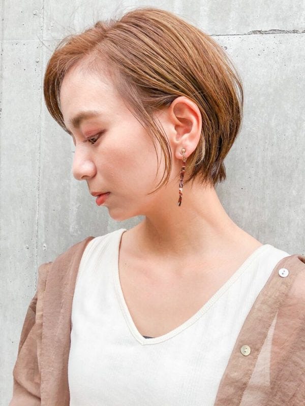 シンプルなストレートショートヘアでも、ハイライトを入れることで立体感が増し、おしゃれでトレンド感がある仕上がりになりますよ。