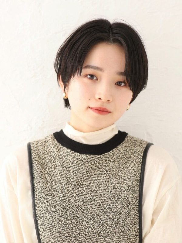 小顔カットのシンプルショートヘア
