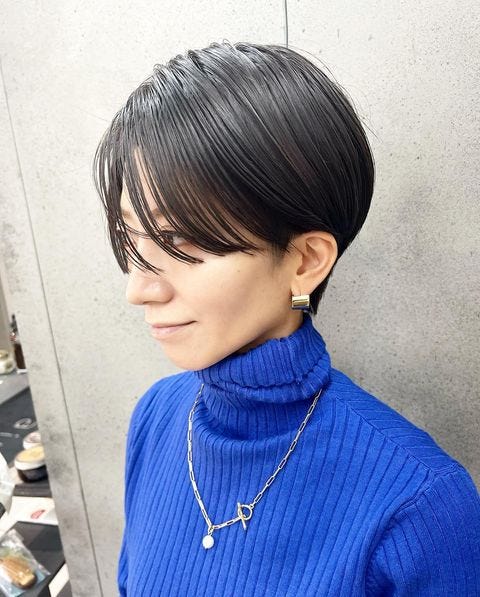 前髪なしのハンサムショートヘアは、骨格ストレートの大人女性におすすめの髪型です。