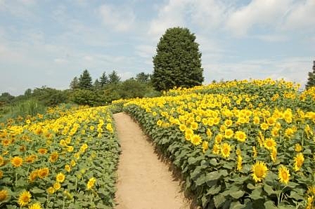 2万平方メートルもの敷地に、約10万本のひまわりが見事に咲き誇っています。