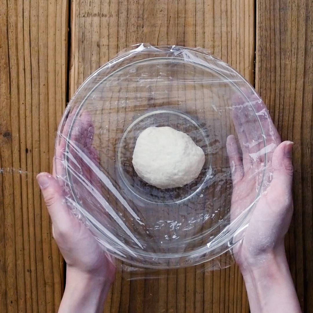 ボウルに小麦粉と塩を入れ、水を少しずつ加えながら練ります。やわらかくなったら、ラップまたは濡れ布巾をかぶせて10分ほど寝かせます。