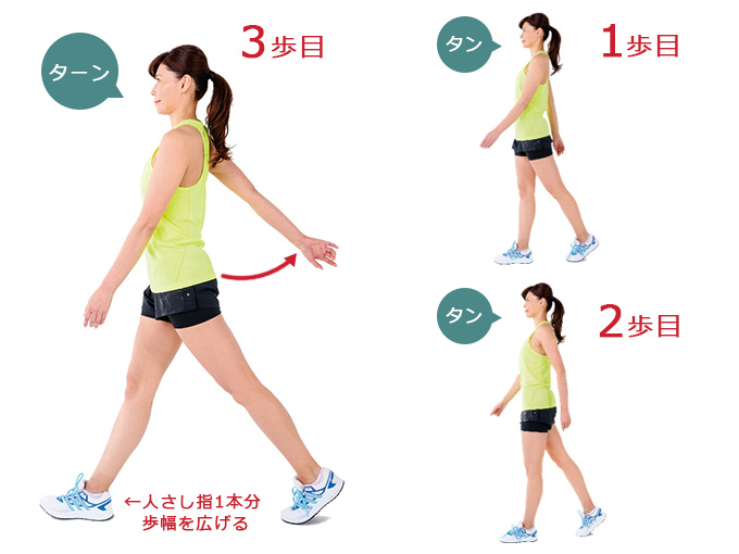 ――「3拍子ウォーク」の歩き方と、意識すべきポイントについて教えてください。