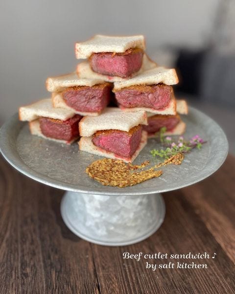 牛肉で作るカツサンドは、特別感がありおもてなしやパーティー料理にぴったりのレシピ。
