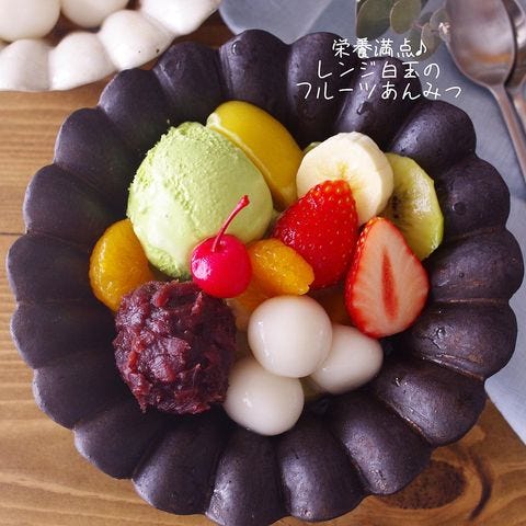 トッピングのフルーツやアイス、あんこは市販のものを使えば手抜きもできて楽ちん。白玉団子は、レンジで作れるのでお手軽です。