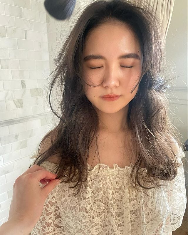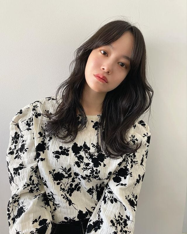 人気の韓国風ヘアスタイルも、ゆるめのウェーブをつけると、やわらかで女性らしい雰囲気が増しますね。