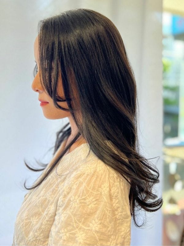 このヘアスタイルなら暗髪や黒髪でもエアリーに見えますよ。