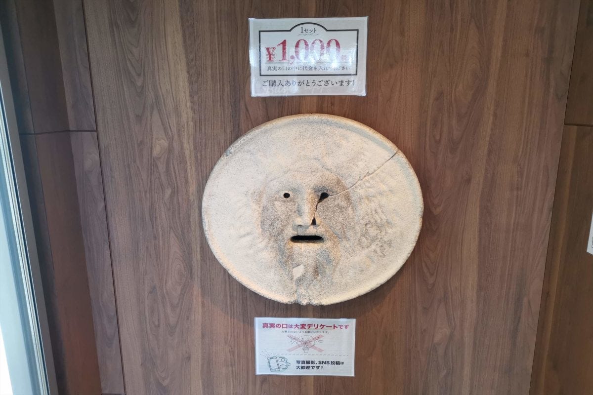なんと、イタリア・ローマにある観光名所「真実の口」が現金投入口になっているのだ。真実の口は嘘つきや偽りの心を持つ人が手を入れると噛まれてしまうという伝説があり、嘘つきは買いづらい仕様になっている(笑)。