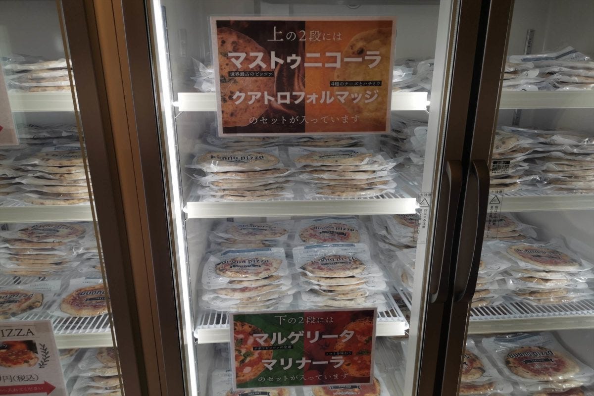 店内は冷凍餃子店と同様で、冷凍ケースの中にピザが大量に積まれている。