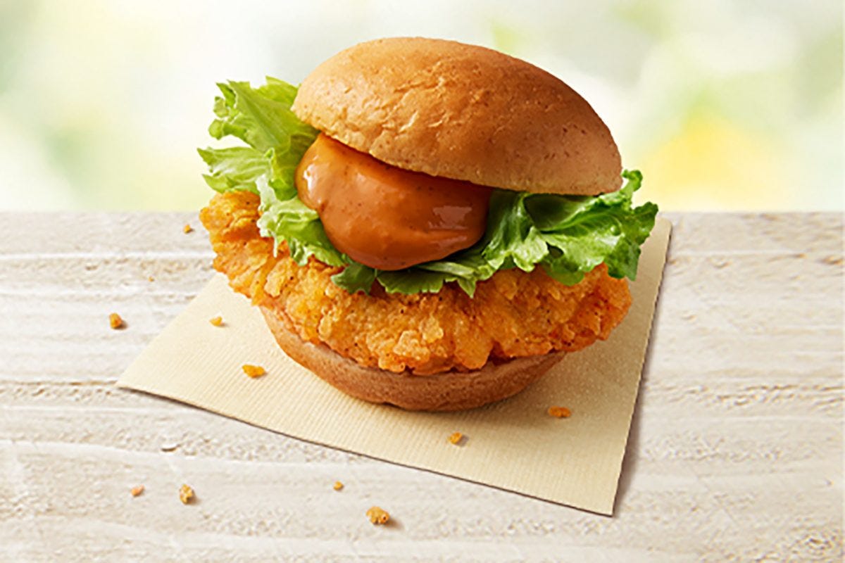 さらに、背徳感のあるバーガーを楽しみたい場合は「ダブルチキンフィレバーガー」をチョイスしよう。チキンフィレを贅沢に2枚使用しマヨソースも2倍量使用した、ボリューム満点の商品となっている。