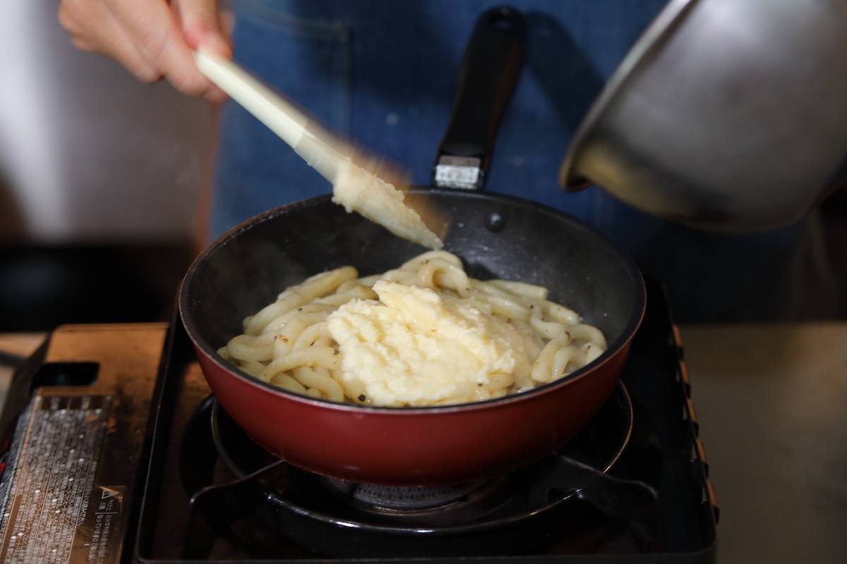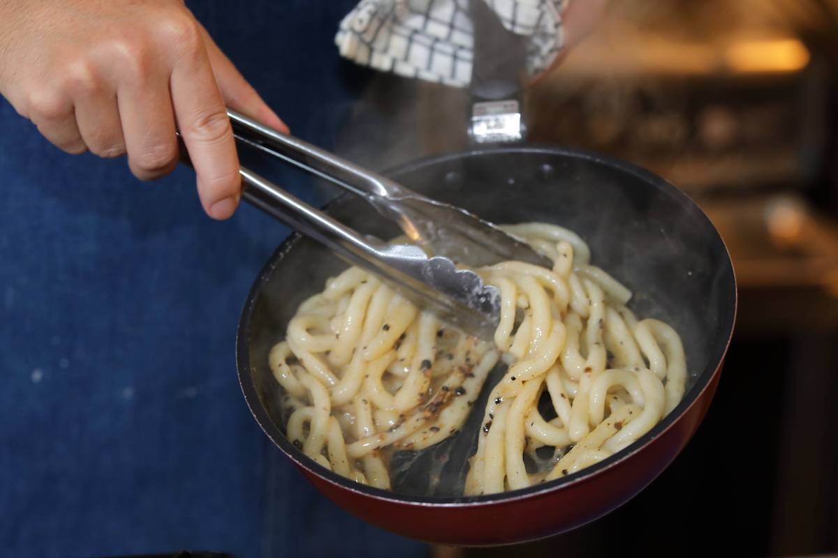 また、ソースが濃厚なので麺が太いパスタとの相性がいいんですよ。うちのお店の看板メニュー、うどんのようなピチ(手打ちの太麺パスタ)にもよく合います。今回は、ピチを使ってカチョエペぺの作り方のコツとアレンジ方法をお教えします」
