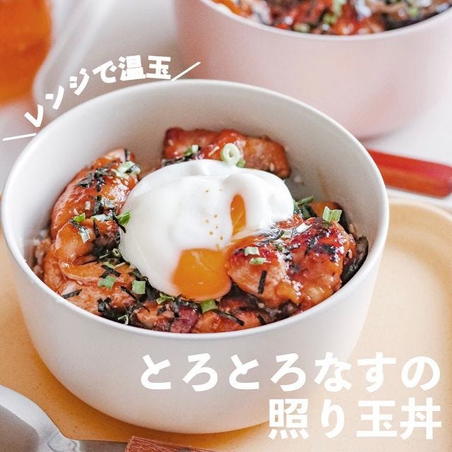 鶏肉となすに甘辛い味付け、そして温泉卵と間違いない組み合わせでご飯がすすむ、鶏肉ととろとろなすの照り玉丼のレシピです。