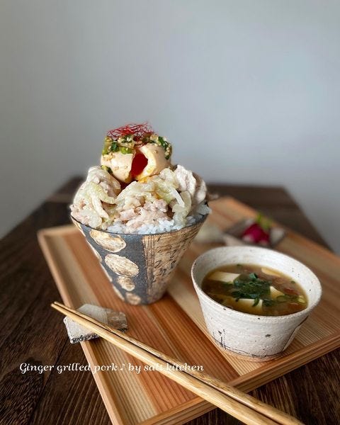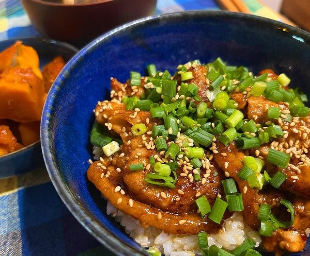 塩麹の旨みでどんどんご飯がすすむ丼ものです。お好みで麻薬卵や温泉卵、卵黄を乗せて食べても美味しいです。豚肉はバラ肉や細切れ肉などを使えばOKです。