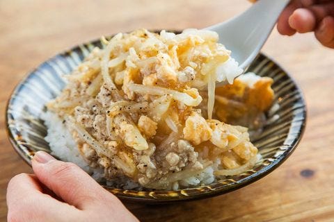 パパッと作れるのでランチや夜食にもおすすめ。もやしは先に炒めておき、ひき肉と卵でベースができてから合わせます。