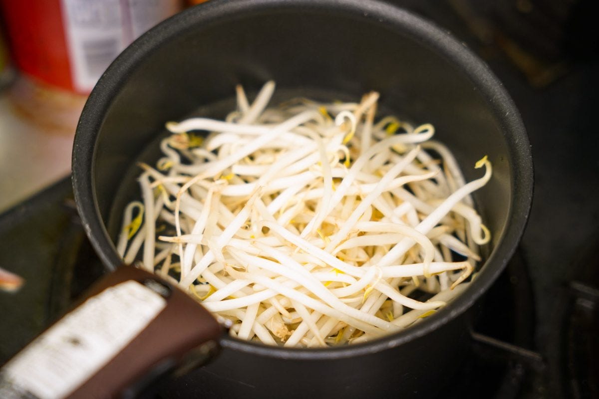 まず、鍋に550mlの水ともやしを投入して沸騰させる。もやしに火が通ったら、次は納豆を入れていく。記者は今まで汁物に納豆を入れたことがないため、内心「これ、大丈夫なのか...」と心配になってしまったが果たして...。