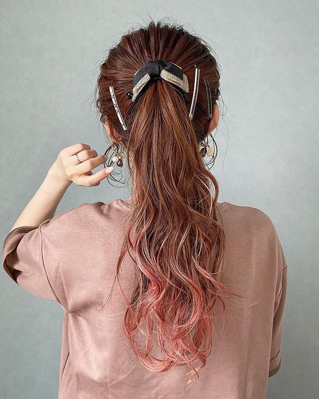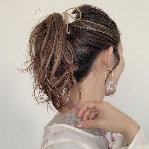 簡単なポニーテールアレンジですが、上下に髪を分けてからまとめると、レイヤーが入っているような髪型に見せることができます。