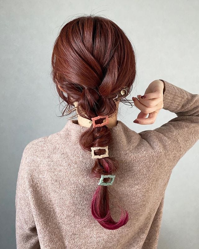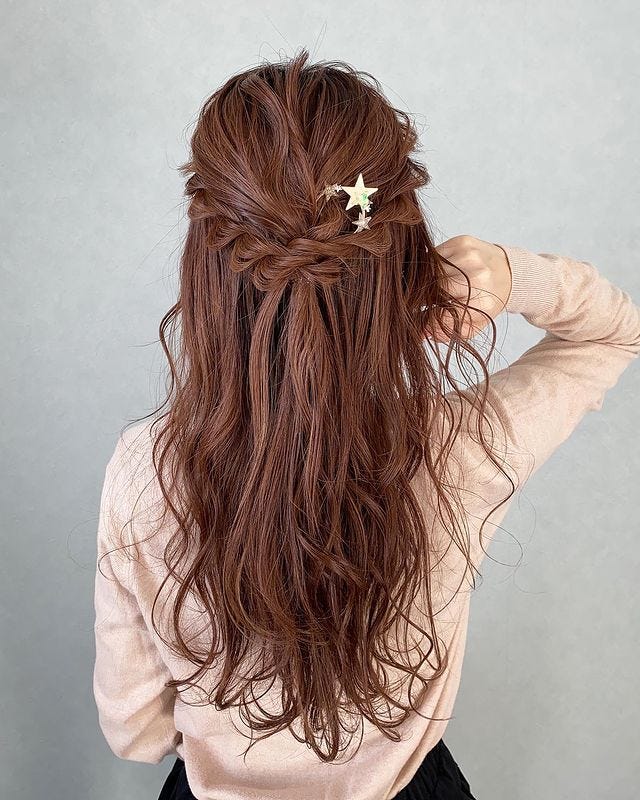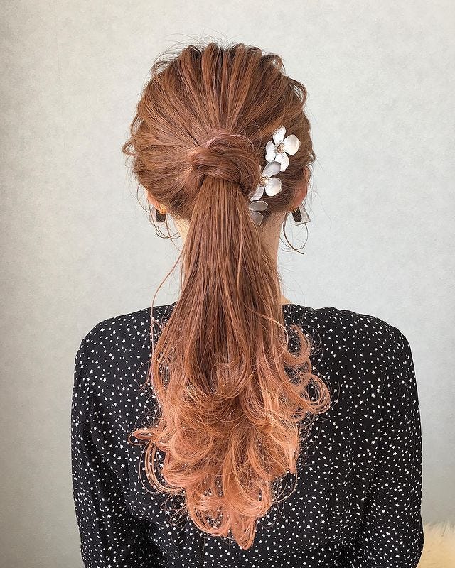 大きめのヘアアクセサリーを添えたり、毛先に動きをつけてふわふわさせたりすると、大人可愛い雰囲気になり素敵ですよ。