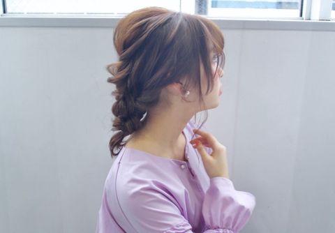 ロープ編み部分を引き出してほぐすことで大人っぽく、こなれ感がある髪型にもできますよ。