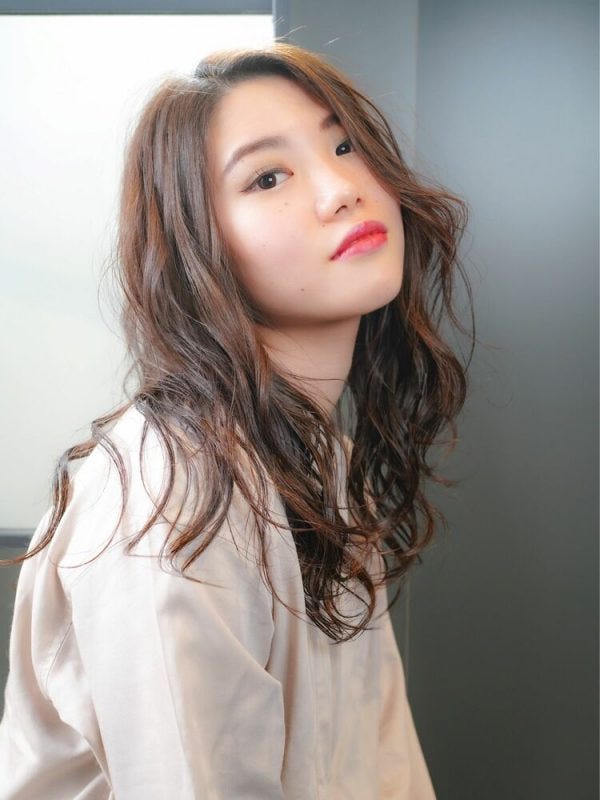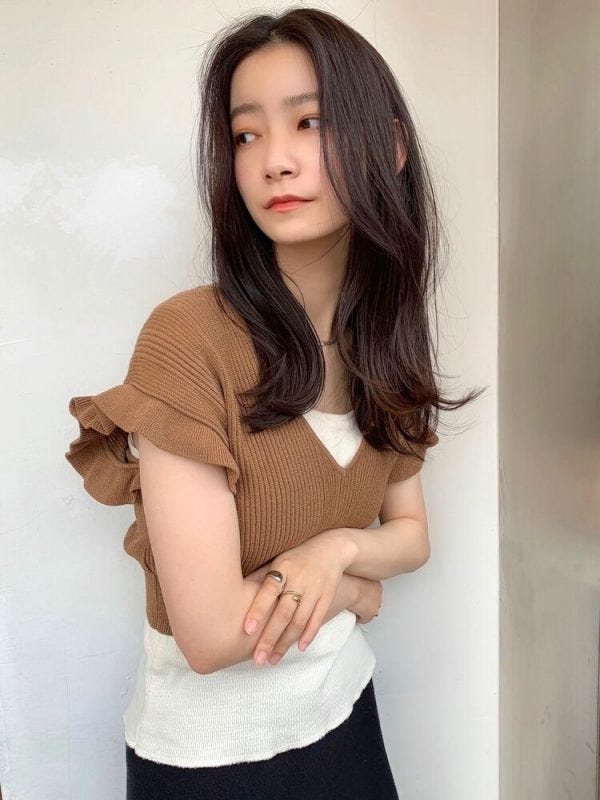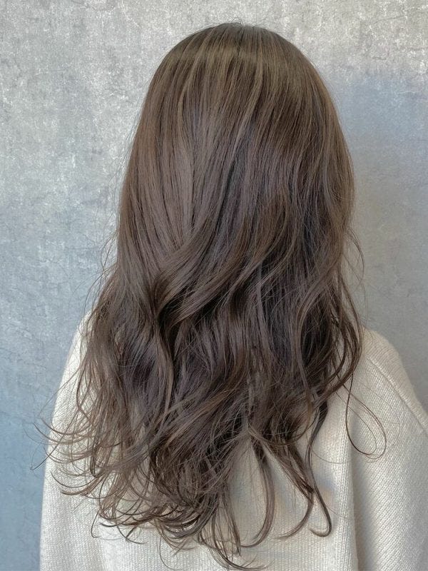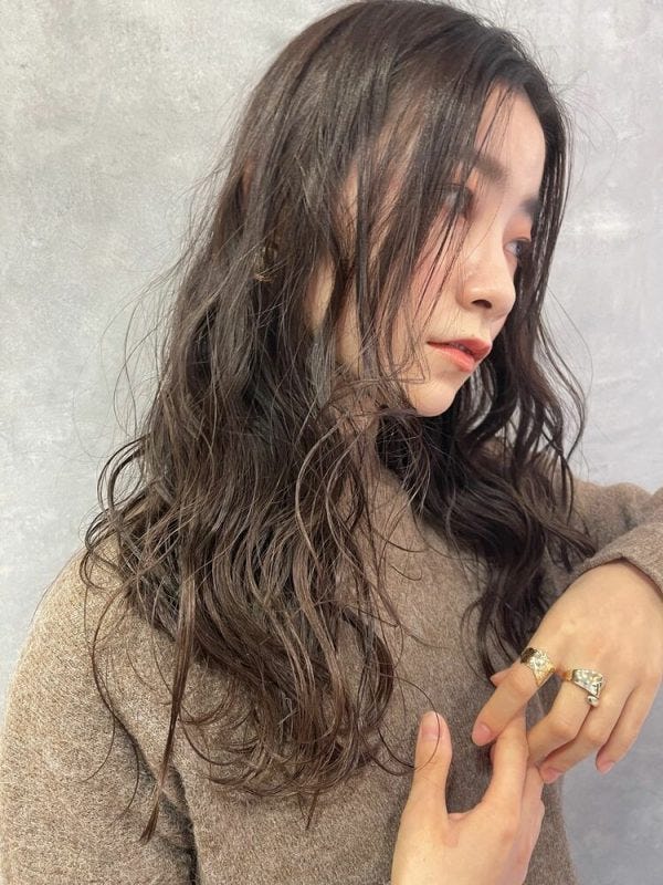 ゆるふわ感があるロングの髪型は甘くなりがちですが、暗髪にすることで落ち着きがあり、30代や40代も挑戦しやすい仕上がりになります。