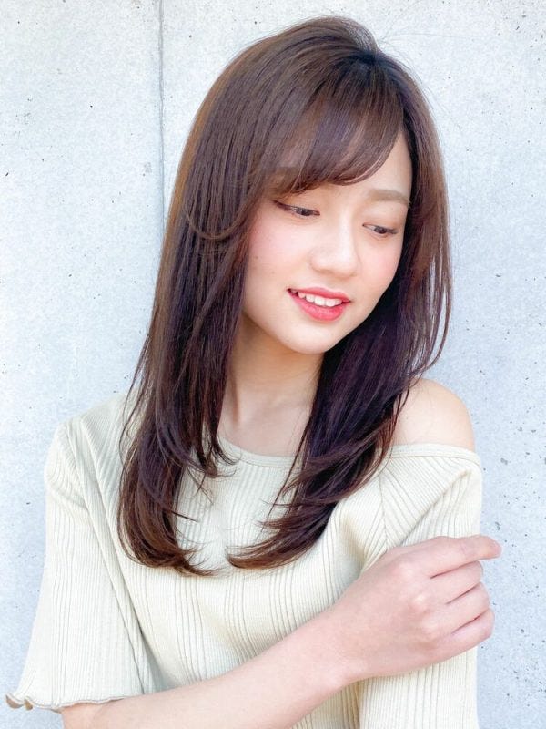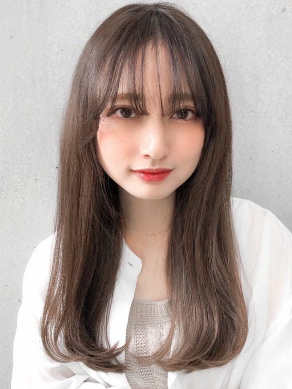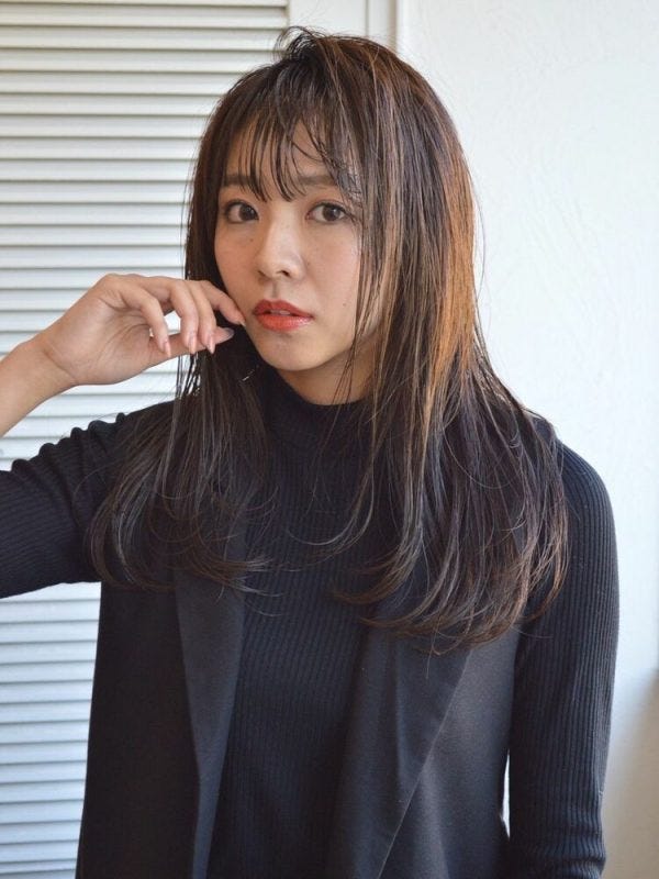 ロングの髪型でも、前髪に透け感をプラスしてあげると、目元も暗くなりすぎずおしゃれで今っぽい雰囲気が素敵です。