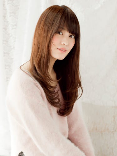きれいなストレートロングの髪型ですが、毛先にパーマをかけているためスタイリングが簡単なのが嬉しいポイントです。