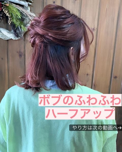 短めボブさんがセルフでヘアアレンジするなら、女性らしいハーフアップもおすすめです。